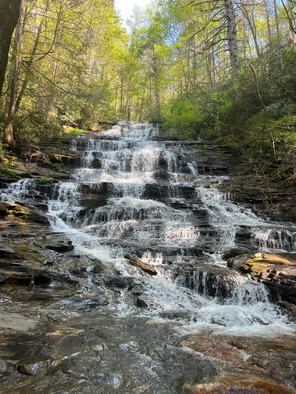 There is a famous poem by Robert Frost called “The Road Not Taken.” I remember reading it in high school and imagining where the road less traveled by would lead. Well I think I may have found it. Today’s Georgia Gem is even more beautiful than what I once imagined. Minnehaha Falls is located in Rabun County, Georgia off of Bear Gap Road. Getting there definitely felt like taking the road less traveled, especially when GPS led us down a winding gravel road. The views getting there are scenic. Cell service is spotty. Along the way, you’ll pass Lake Rabun and the beautiful homes/ boathouses that line its shore. It took us over two hours to reach this location in Northeast Georgia, but it was certainly worth the drive.